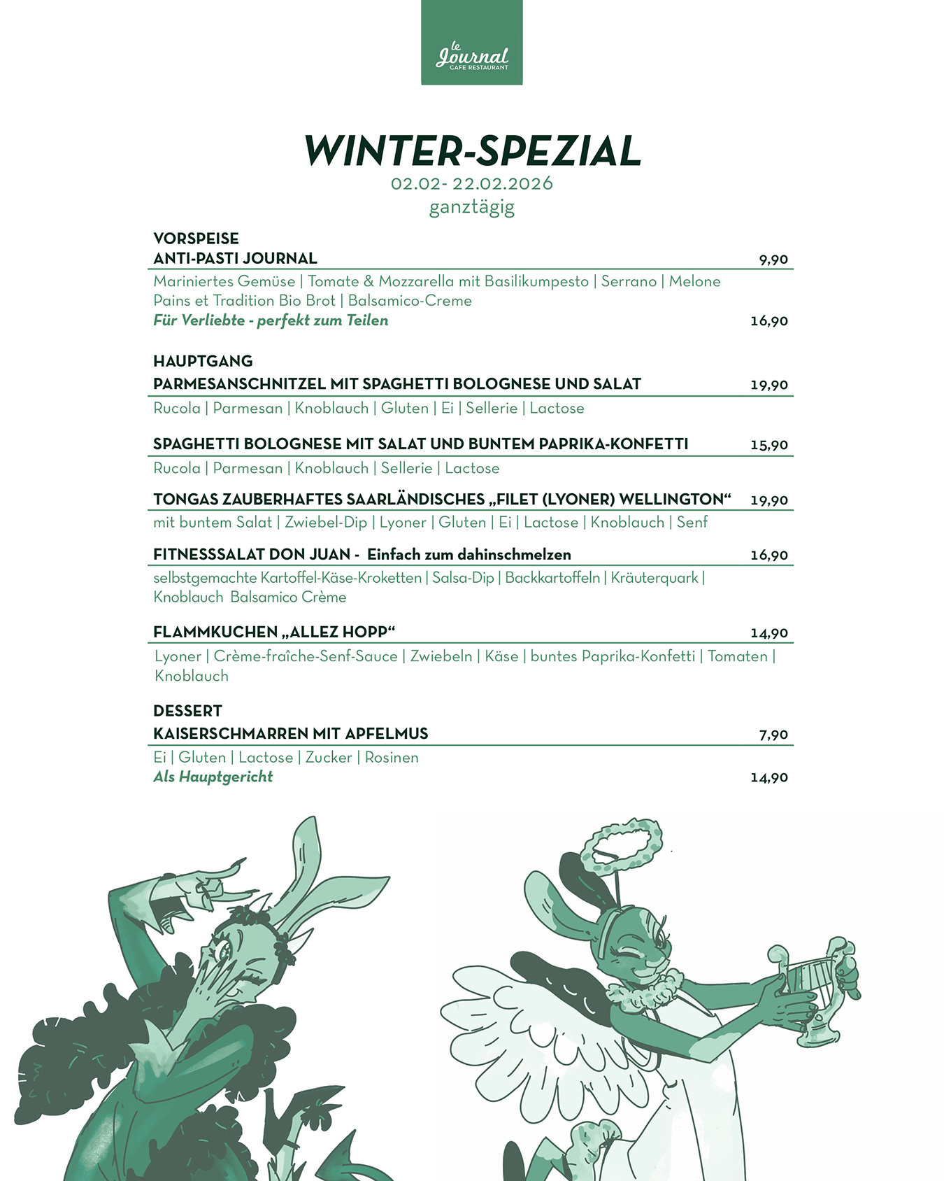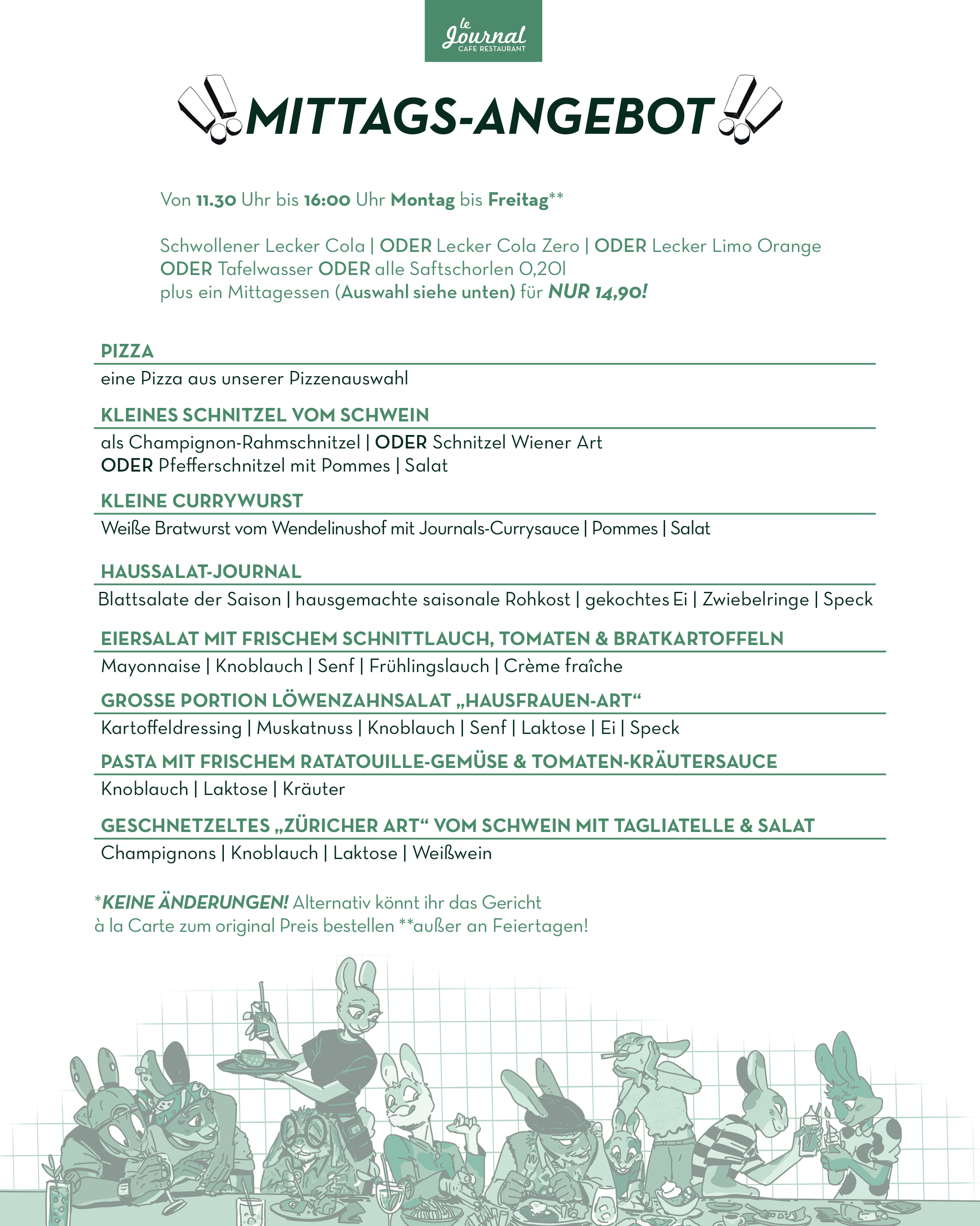 durchgehend warme Küche von 11.30 Uhr bis Open End (mind. bis 21.00 Uhr)